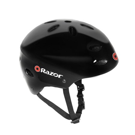 Make sure to keep your little ones safe during outdoor playtime with the Razor V17 Helmet for children- Great for biking, skating, scooter riding and more- Ergonomic interior padding is comfortable and secure- 17 top and side vents allows airflow and helps riders keep a cool head on hot days- Side release buckles adjust and fasten quickly- Fits head sizes 21.5 to 22.5 inches- Complies with CPSC standards- Color: Glossy Black- Ages: 5 to 8- Weight: 1.04 pounds