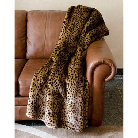 The vegan Mina Victory by Nourison N9371 Faux Fur Throw is made of plush acrylic yet resembles a lush leopard fur