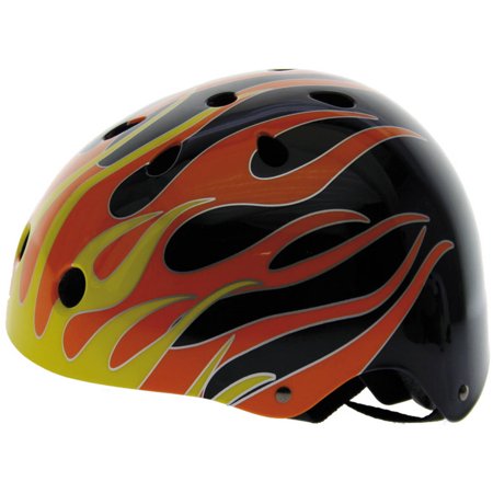 Freestyle Helmet with Flame Design, Medium: Freestyle helmet for outdoor sports: biking, skating and BMX riding3 different foam pads offer an adjustable fitSize: MediumYellow/black flame designSee our entire assortment of bikes and ride on toys at Walmart.com.